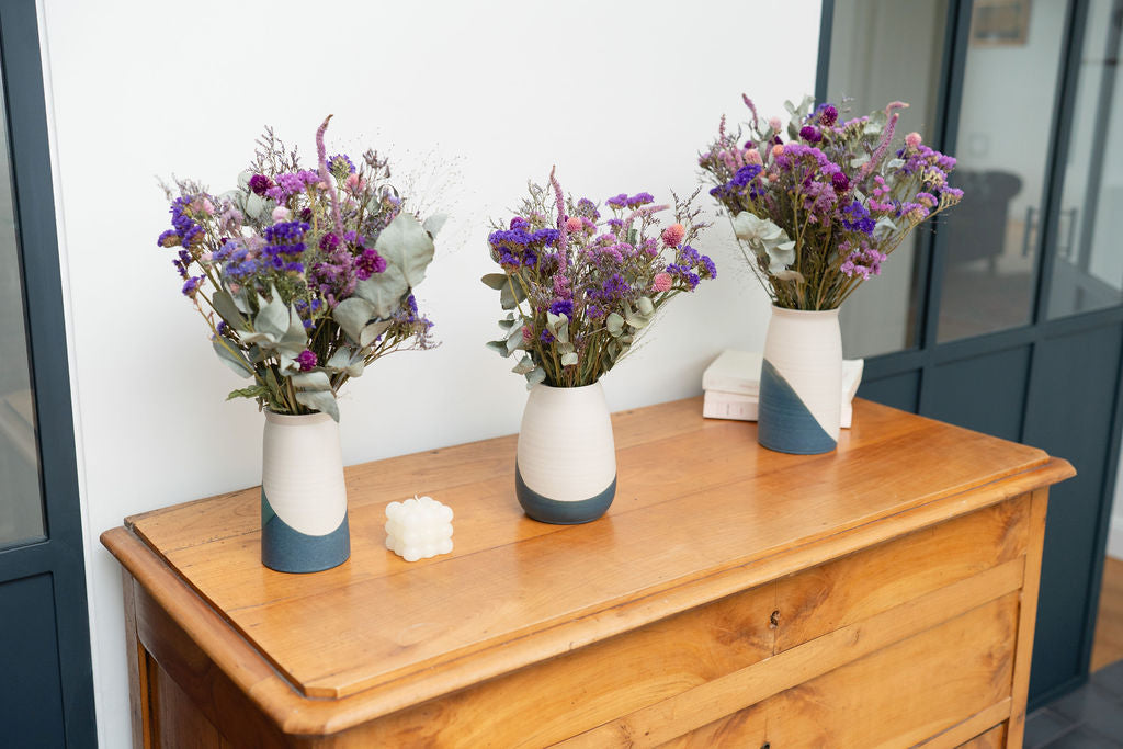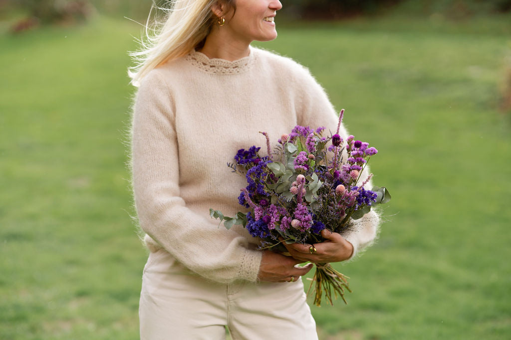 Ses fleurs françaises, cultivées biologiquement, sont séchées naturellement pour durer longtemps sans perdre leur éclat.