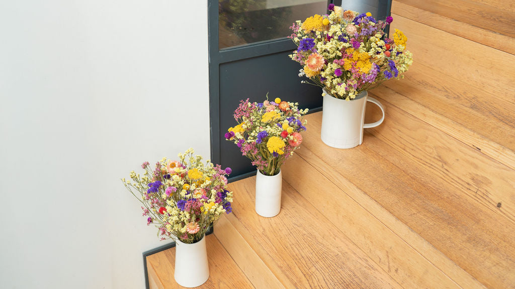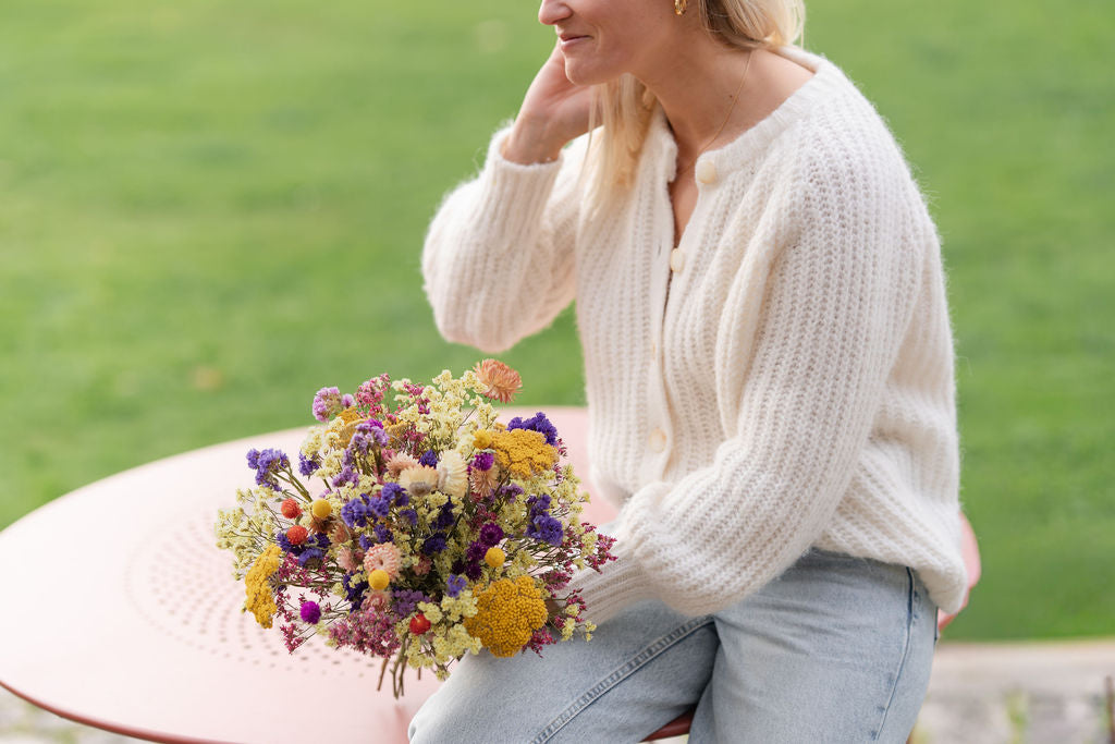 Cultivées en France dans des fermes biologiques, ses fleurs séchées naturellement garantissent un bouquet durable et éclatant.